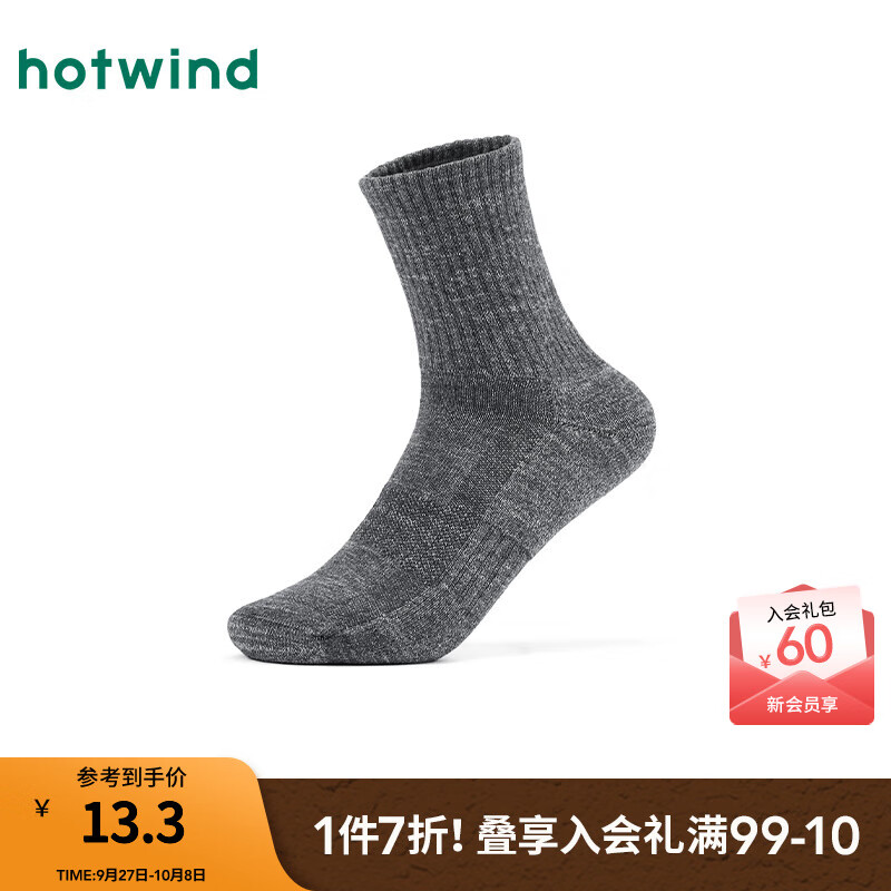 热风(Hotwind)【商场同款】男士袜子2025年秋季新款毛圈休闲厚款中帮袜长袜 09灰色 均码