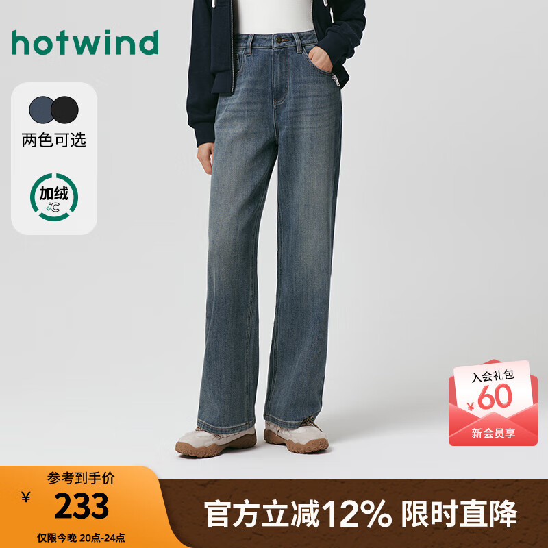 热风(Hotwind)【商场同款】女士牛仔裤直筒宽松长裤2025年冬季新款显瘦阔腿裤 27深兰 27