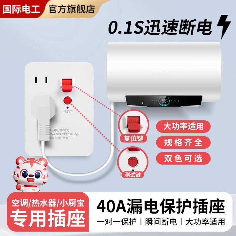 FDD国际电工40A大功率空调漏电保护插座开关10A电热水器漏保五孔插头防漏电 雪柔白-40A五孔漏保开关插座