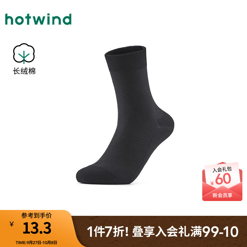 热风(Hotwind)【商场同款】男士袜子2025年秋季新款棉肌理长绒棉纯色高帮袜 01黑色 1双 均码