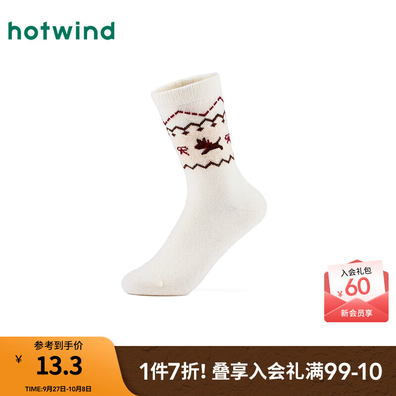 热风(Hotwind)【商场同款】女士袜子加厚中筒袜2025年冬季新款费尔岛小狗高帮袜 03米色 均码