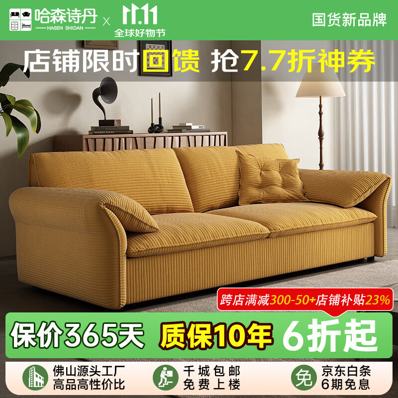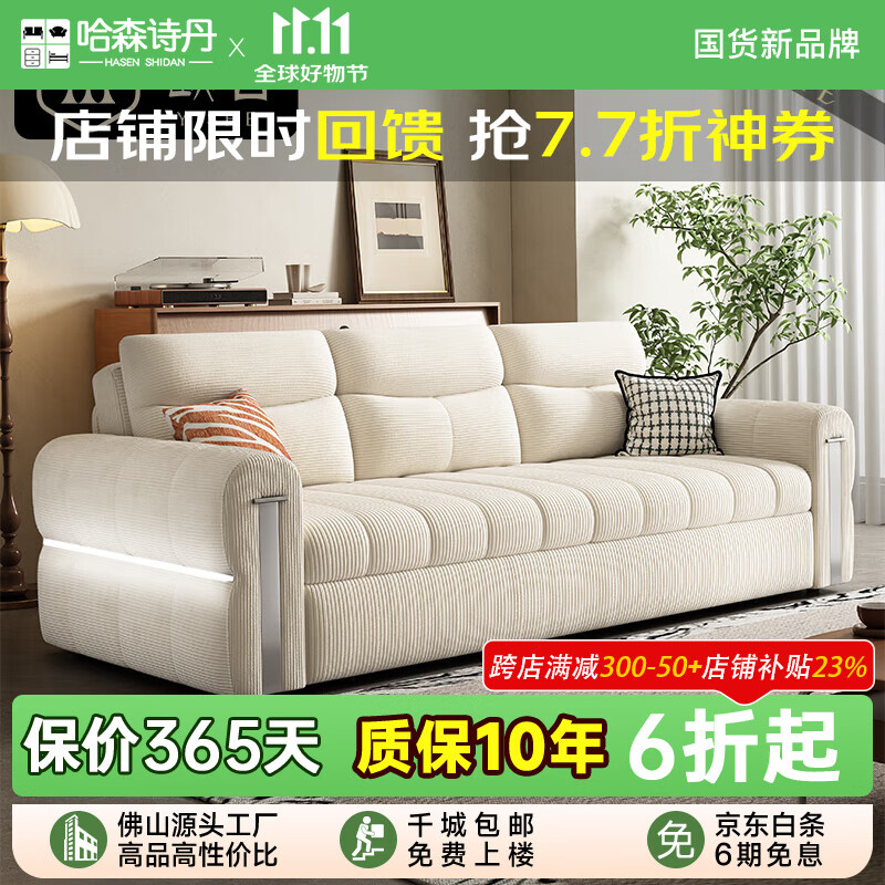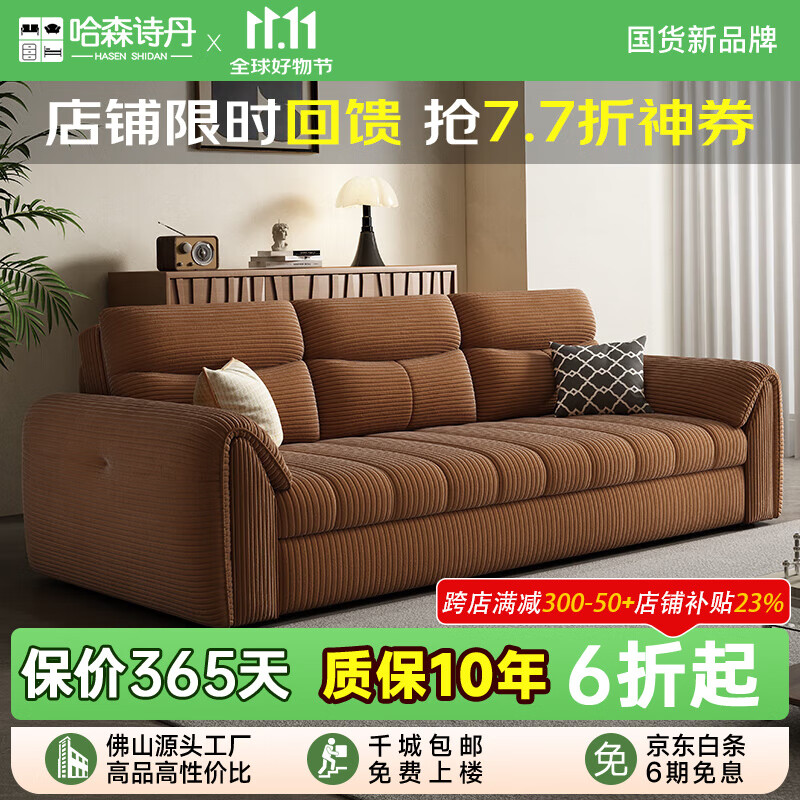 哈森诗丹多功能沙发床一体两用小户型新款客厅现代简约高端灯芯绒布艺沙发 外径:1.45m(无储物)加厚灯芯绒 高弹海绵款(软硬适中)