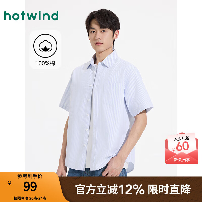 热风男士短袖衬衫上衣2025年夏季新款牛津纺竖条纹衬衣商务内搭半袖 22兰白 S