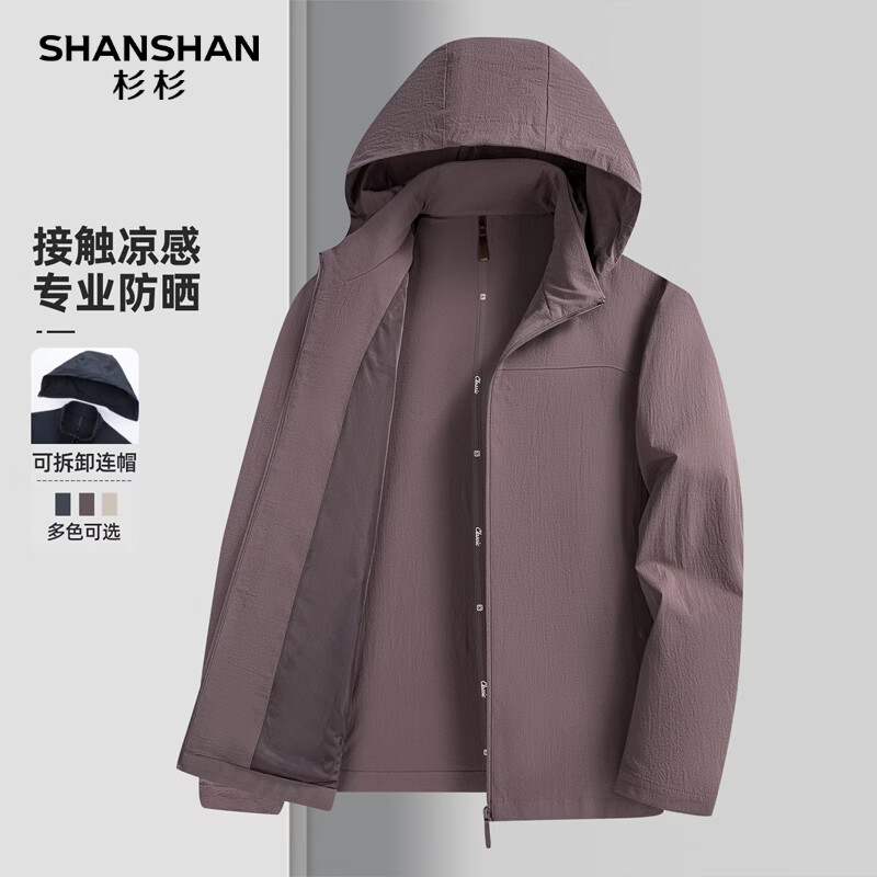 SHANSHAN杉杉【防晒+凉感】夹克男可拆卸帽经典挺括有型透气简约通勤外套 咖色 M /170