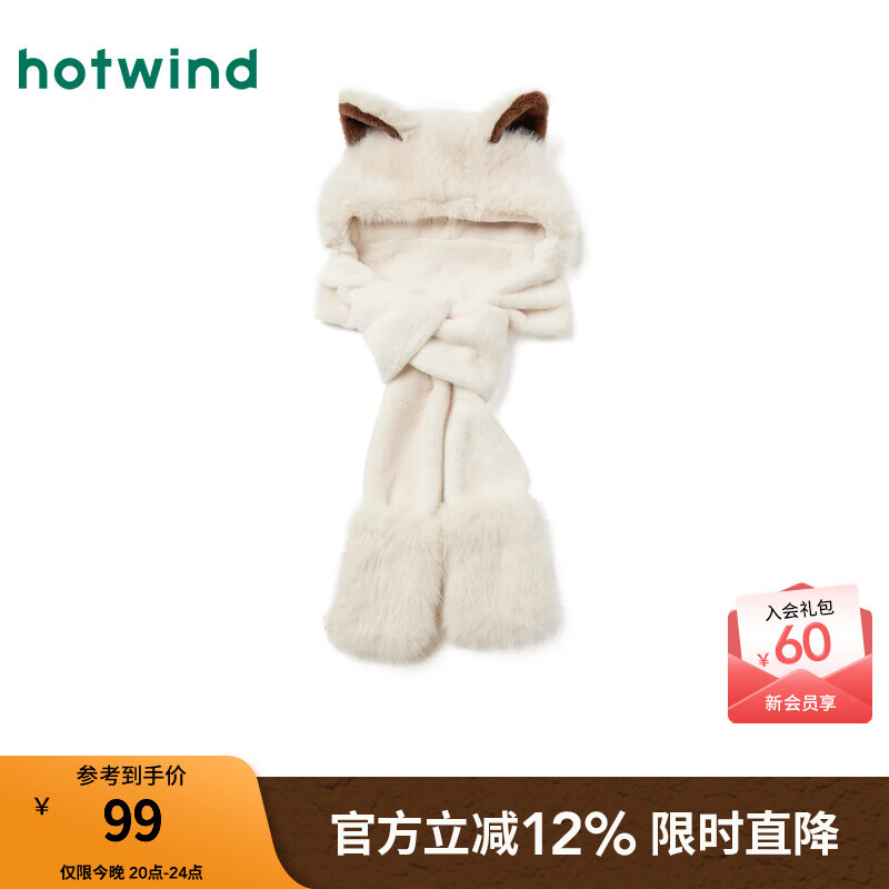 热风(Hotwind)【商场同款】女士三合一保暖毛绒帽子2025年冬季新款可爱耳朵围巾 03米色 F