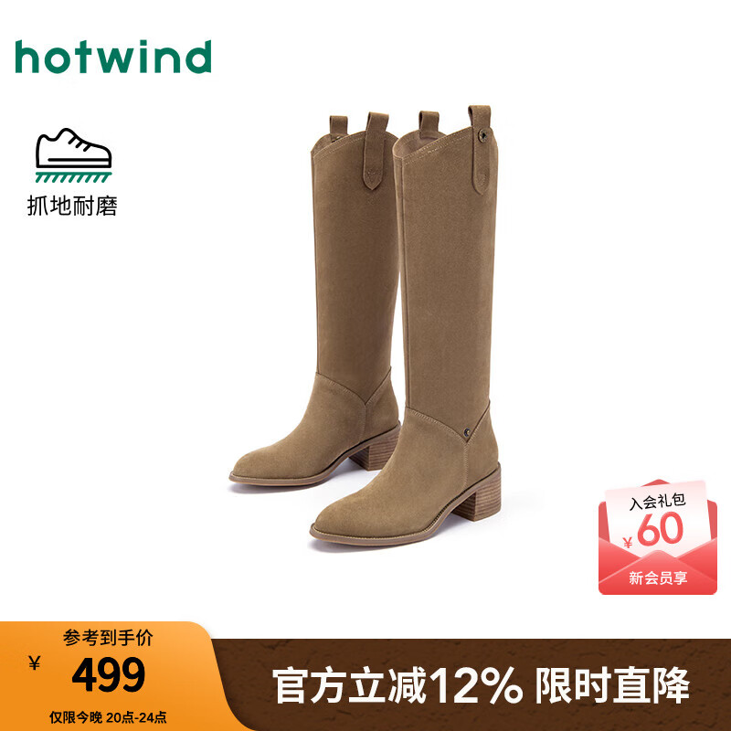 热风【商场同款】西部牛仔靴2025年冬季新款复古长筒靴美拉德时装靴 08杏色 37