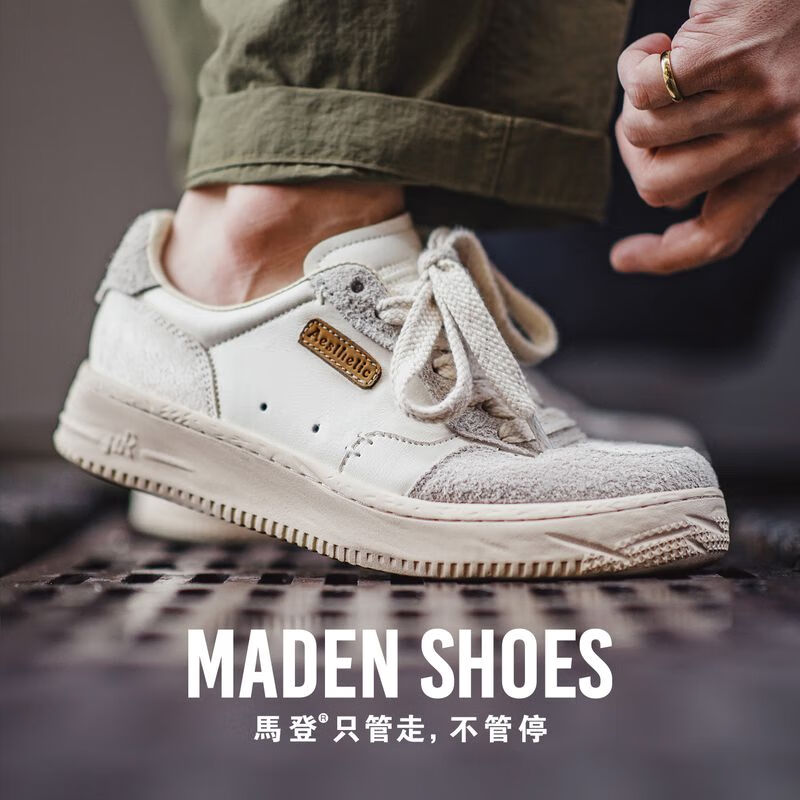 马登百搭小白鞋运动休闲鞋子男士2025夏秋季新款透气厚底低帮简约板鞋 米灰 马登工装 43 (265mm)