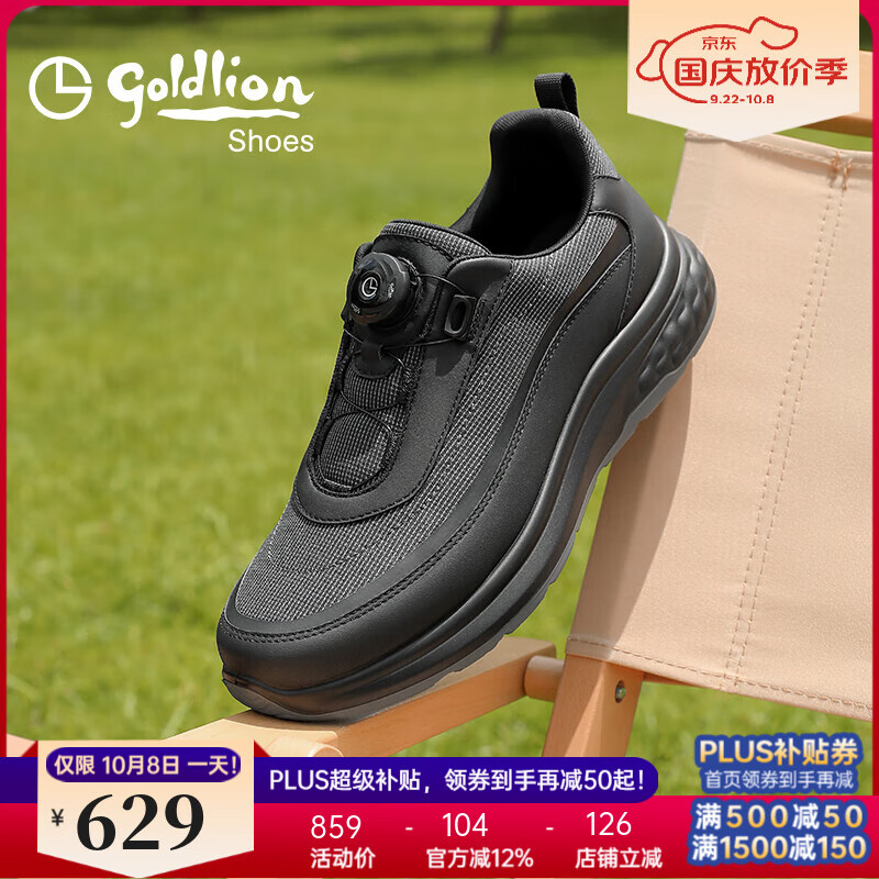 金利来(Goldlion)男鞋休闲鞋25年秋季新品厚底轻便缓震运动鞋男健步鞋皮鞋男跑步鞋 黑色 38