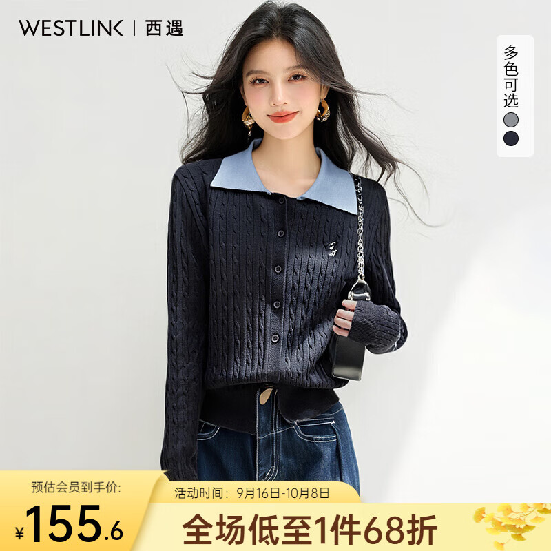 西遇长袖针织开衫外套女2025年秋季新款撞色Polo领宽松毛衣 宝蓝色 (预售15天) M (160)