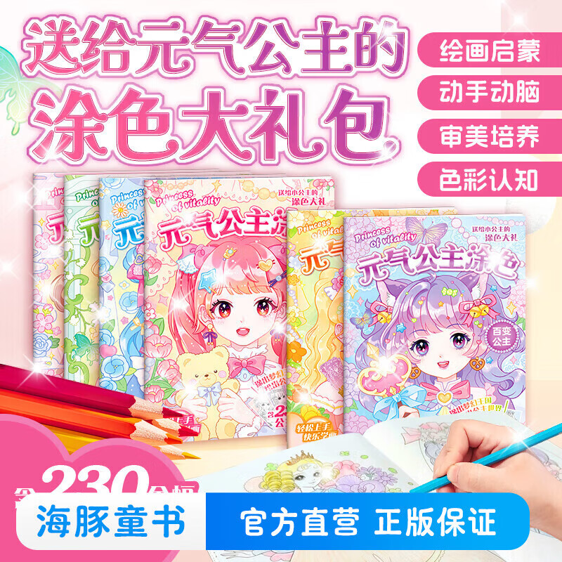 元气公主涂色儿童动脑益智力玩具卡通涂色书 230多套形象 华丽大开本 3-6岁 元气公主涂色·俏皮公主