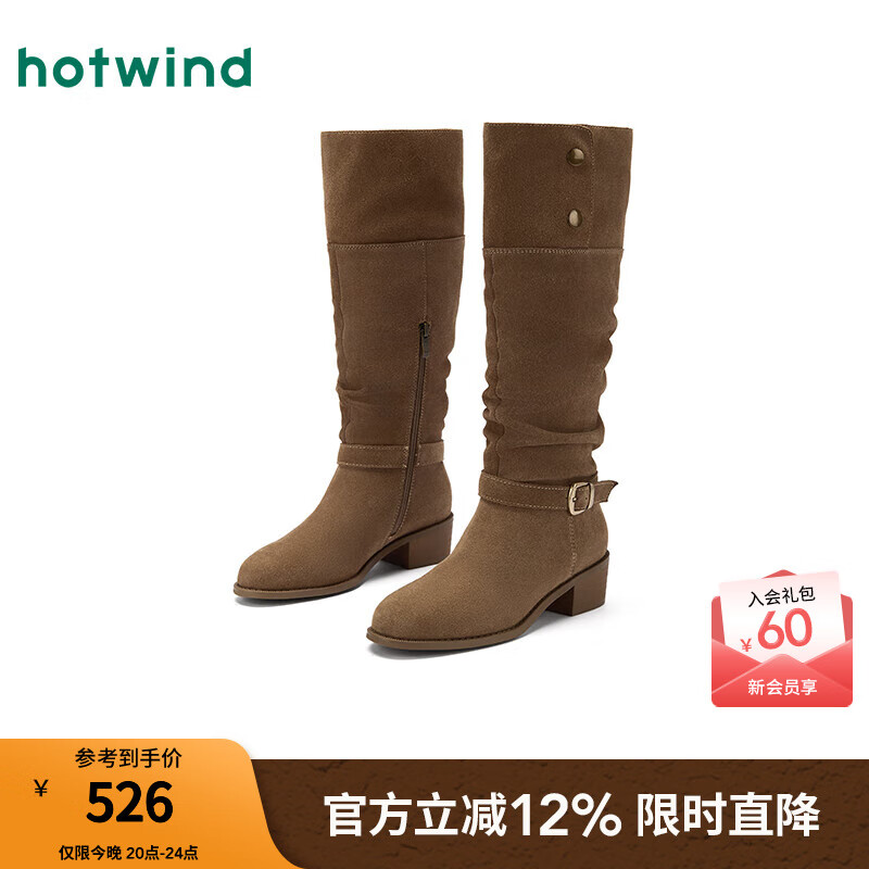 热风都市游牧风靴子堆堆靴2025年秋季新款西部牛仔靴长筒靴骑士靴 08杏色 38