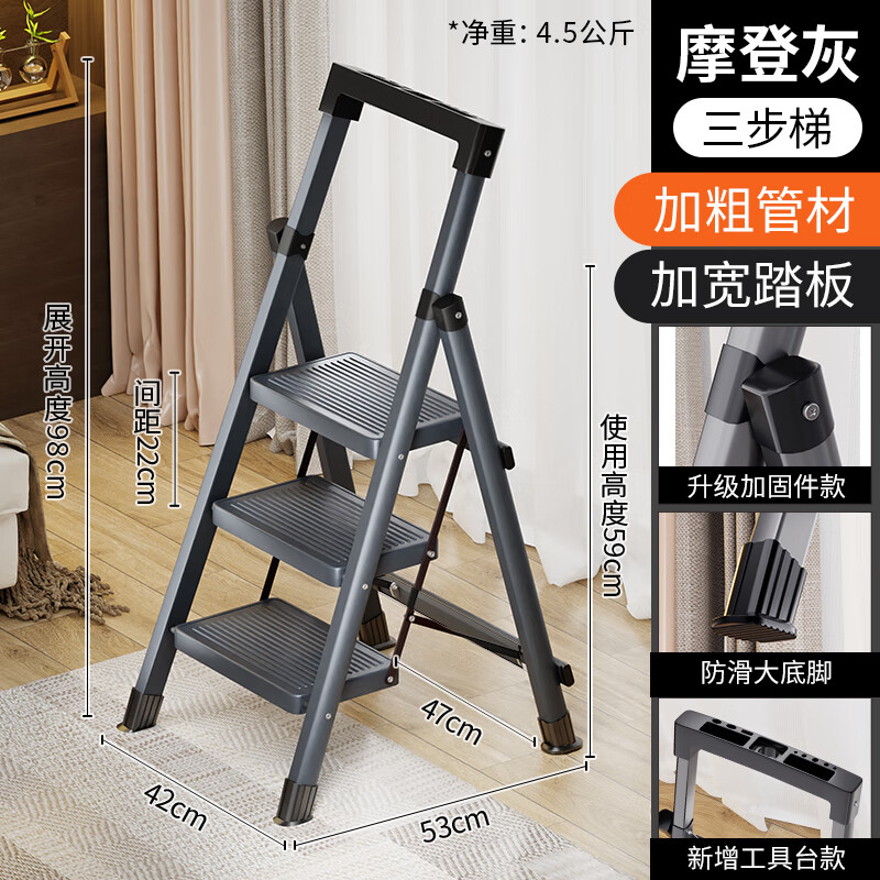 慕戈家用梯子折叠多功能伸缩加厚人字梯室内7步8步工具架便携登高楼梯 工具台+摩登灰三步梯加厚加固