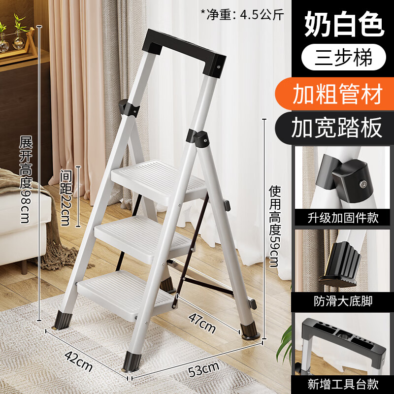 慕戈梯子家用梯子折叠伸缩梯室内外多功能爬梯加厚人字梯登高阁楼梯 工具台+奶白色三步梯加厚加固