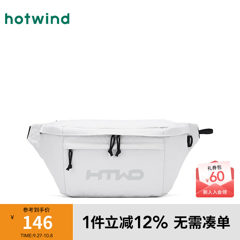 热风男士背包2025年秋季新款简洁字母多用胸包机能风骑行斜挎包包 118白灰 F