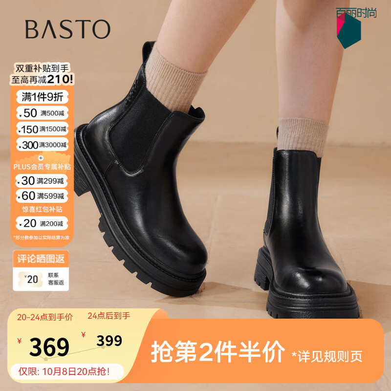 百思图2025冬季新款切尔西靴简约时尚通勤女短靴W0720DD5【预售】 黑色 38