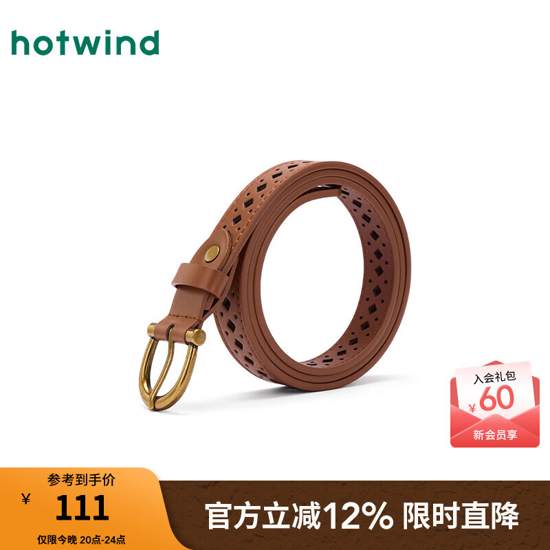 热风【商场同款】女士皮带25年秋新款复古菱形镂空针扣皮带可调节腰带 02棕色 105cm