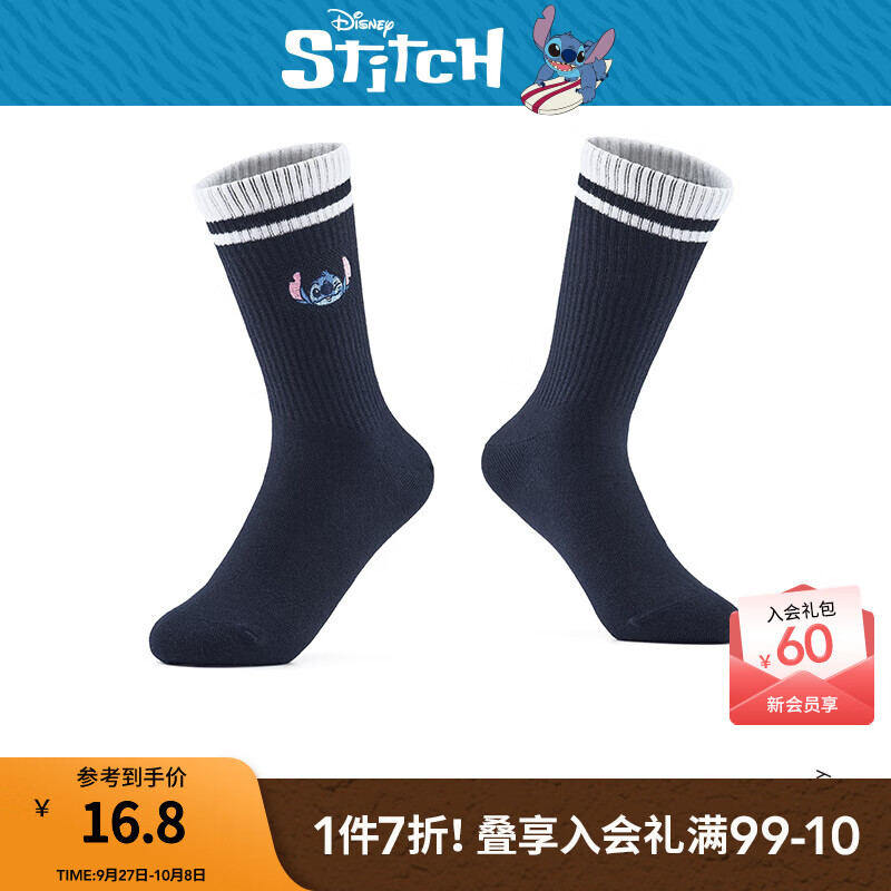 热风(Hotwind)【迪士尼系列】女袜子2025年秋季新款女士史迪奇卡通趣味高帮袜 29藏青兰 1双 均码