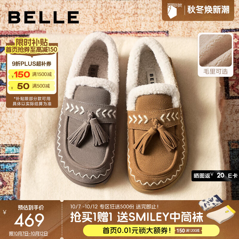 百丽(Belle)复古流苏毛毛鞋女2025冬新商场同款民族风保暖休闲鞋E5B1DDM5 棕色 37
