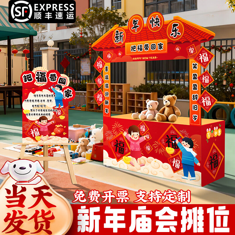 玺飞新年义卖摊位装饰庙会摊位KT板幼儿园新年环创布置新年环创背景 当日发/20款新年摊位含全套支架