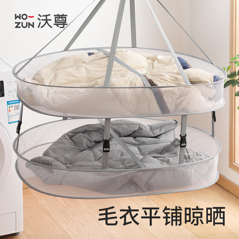 沃尊晒衣篮晾衣网羊毛衫专用平铺晾衣架晾衣服网兜毛衣晾晒神器晾晒网 长方形-双层有围栏【升级可拆卸】