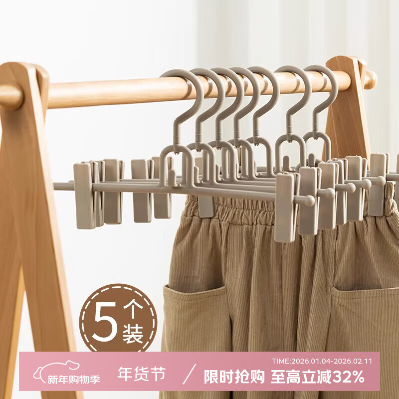 吱凡日本裤架裤夹子家用挂裤子收纳神器专用衣架裙夹晾晒内衣无痕强力 裤架-白色【可叠挂】 5个