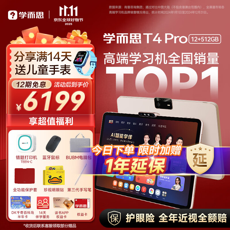 学而思学习机T4 Pro【2025新款】新课标新考法超大内存学习平板电脑启蒙小学初中高中13.2英寸 12+512GB