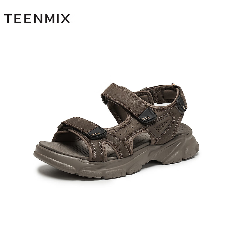 天美意男鞋商场同款户外运动透气魔术贴男沙滩鞋2025新款65Q04BL5 浅啡 39