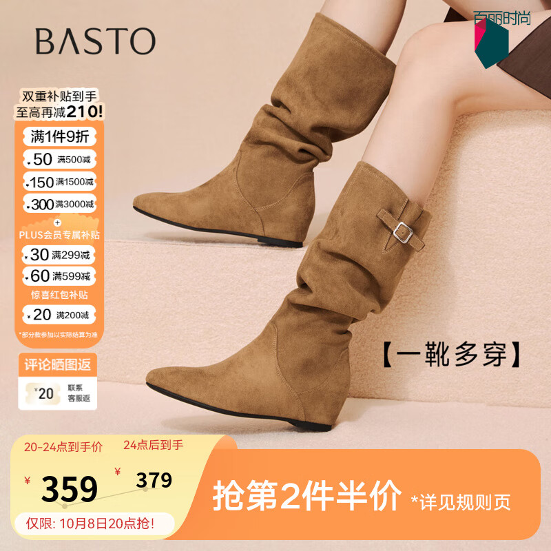 百思图2025冬季新款西部靴时尚简约复古潮流女长靴F2101DC5【预售】 驼色 36