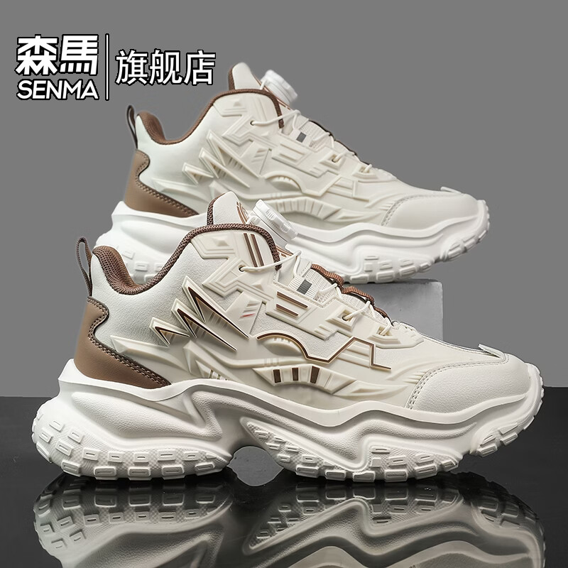 森馬男鞋2026新款夏季百搭厚底增高运动休闲跑步鞋青少年机甲老爹潮鞋 米棕【基础款】 39 标准码数/现货秒发