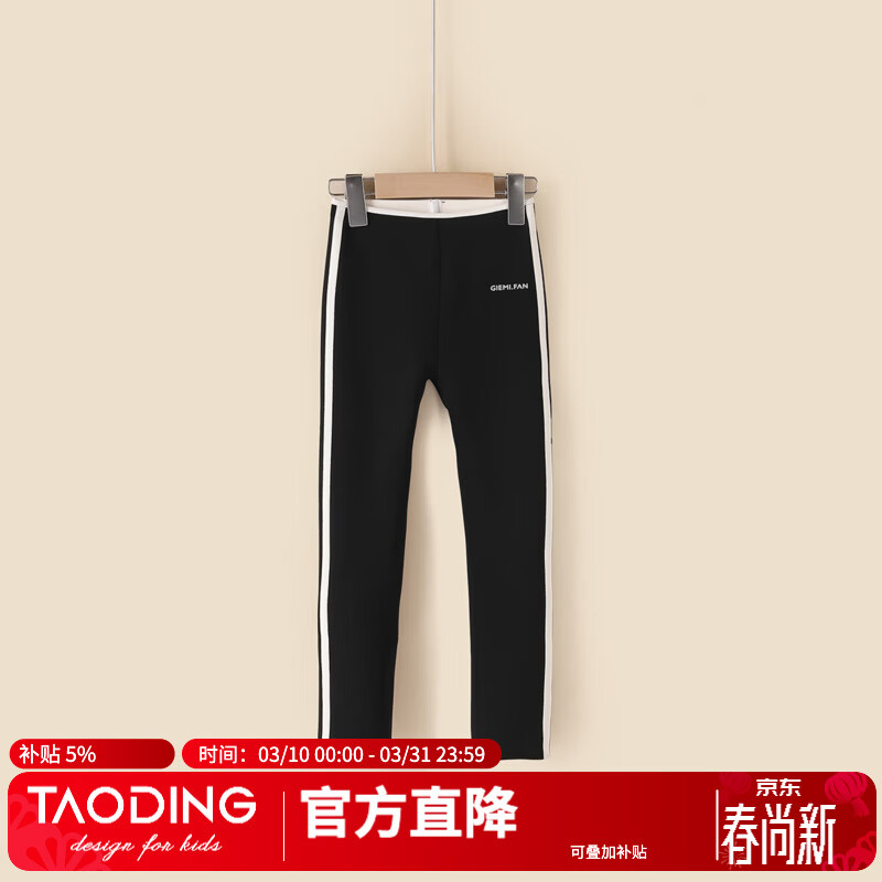 淘町女童松紧腰弹力打底裤外穿秋冬新款儿童棉时尚时髦加厚小脚长裤 黑色 110
