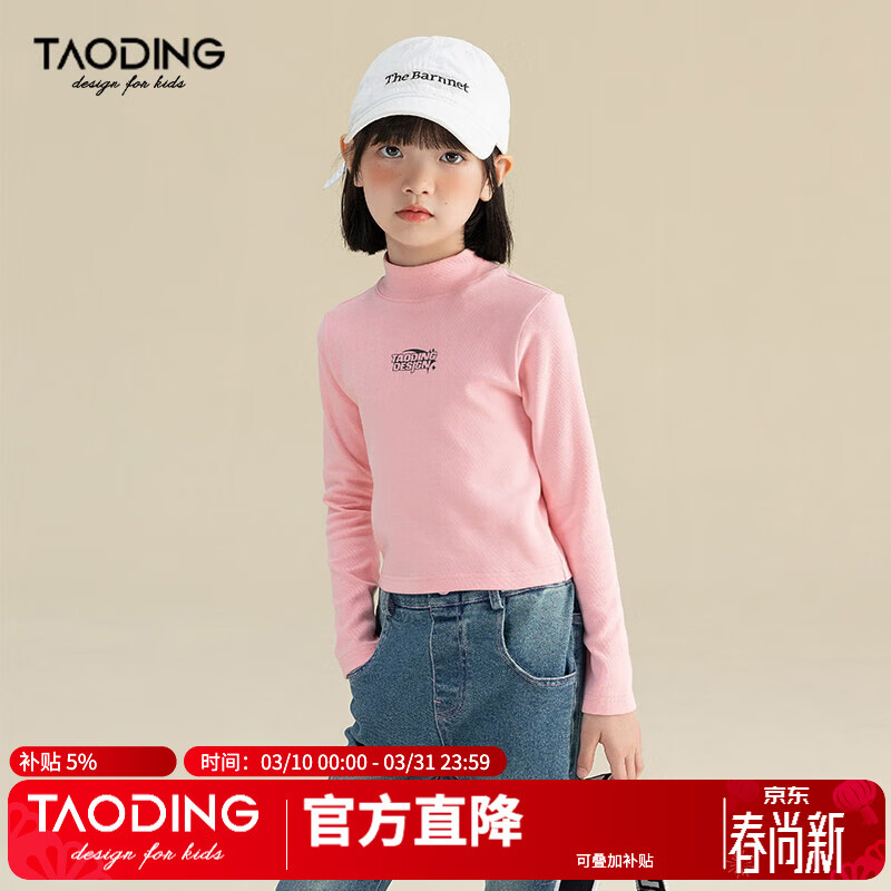 淘町淘町女童长袖t恤春秋季新款中大童复古百搭高领韩版休闲打底衫 粉色 150
