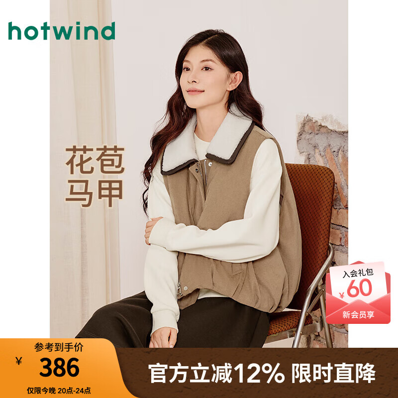 热风(Hotwind)【商场同款】女士羽绒服马甲2025年冬季新款翻领美拉德羽绒背心 08杏色 S