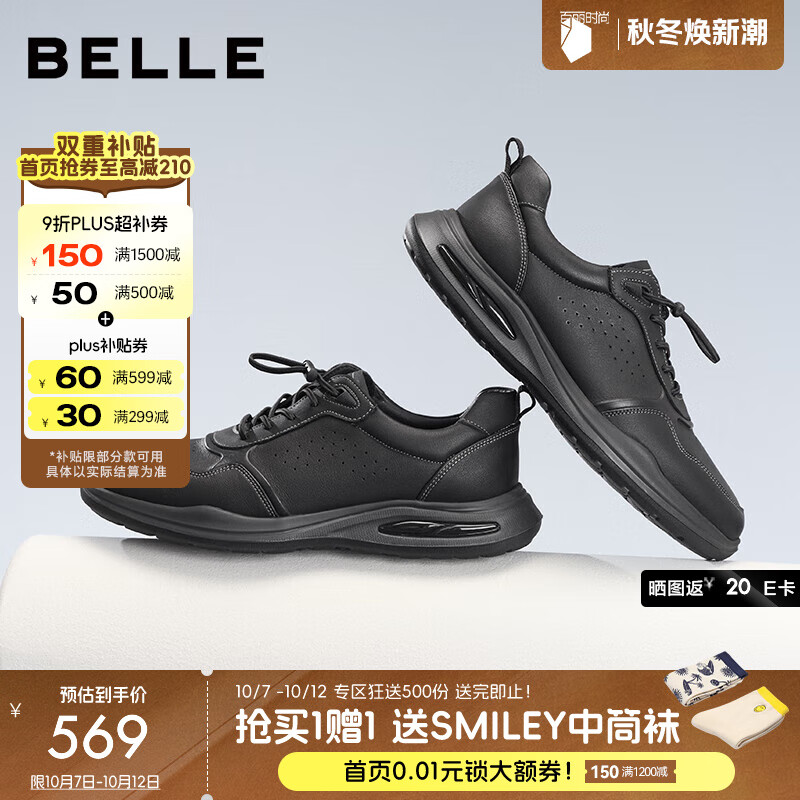 百丽(Belle)男鞋休闲运动鞋2025秋新款商场同款户外厚底真皮健步鞋8VA01CM5 黑色-单里 41