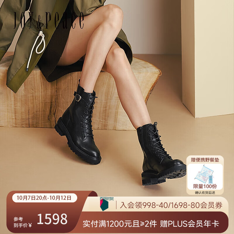 真美诗(Joy&peace)2025年冬季新款帅气干练金属饰扣牛皮革马丁靴YPU37DZ5 黑色 37