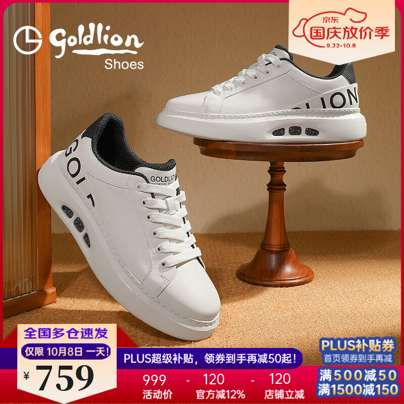 金利来(Goldlion)霸霸鞋男鞋25年秋新品板鞋男休闲鞋厚底爆米花软弹底运动鞋男 白/黑 39