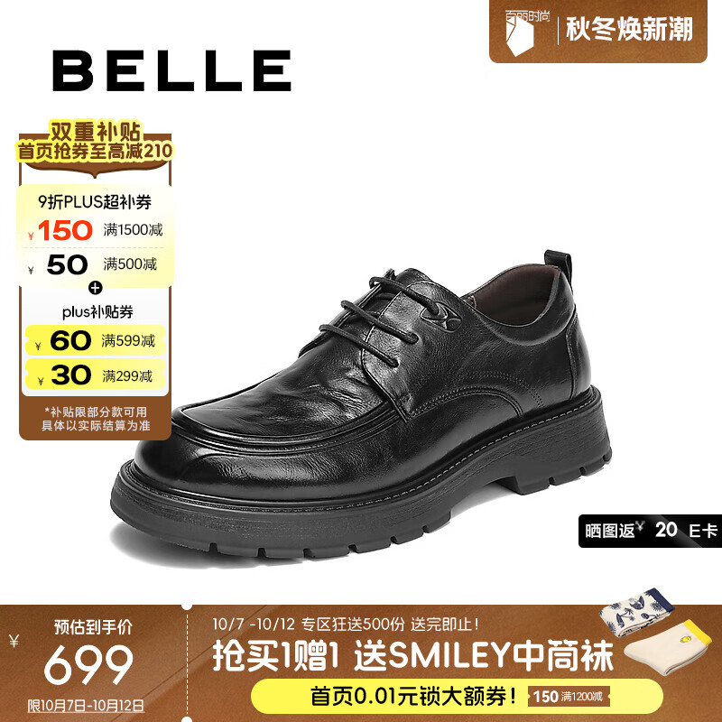 百丽(Belle)厚底商务鞋男鞋2025冬季新款商场同款牛皮革休闲皮鞋8VU01DM5 黑色 39 (245mm)