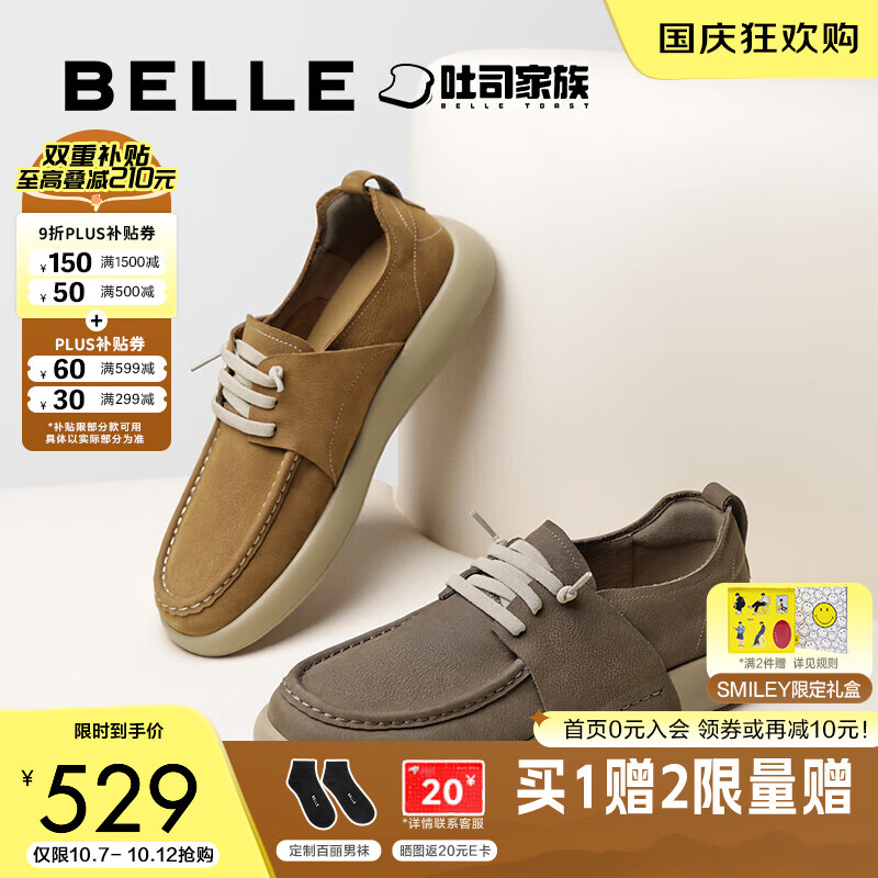 百丽简约舒适方糖吐司休闲鞋男25秋新牛皮革户外工装鞋8TZ01CM5 卡其色 38 (240mm)
