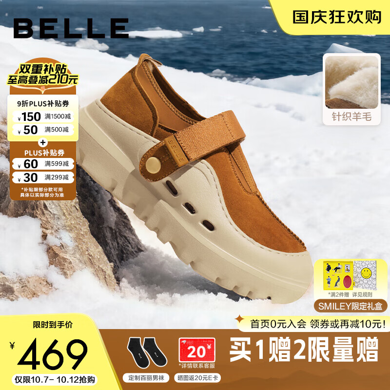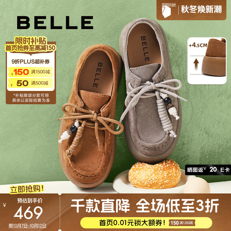 百丽(Belle)复古绒面勃肯鞋女2025秋新时尚串珠休闲袋鼠鞋B2882CM5 棕色 37