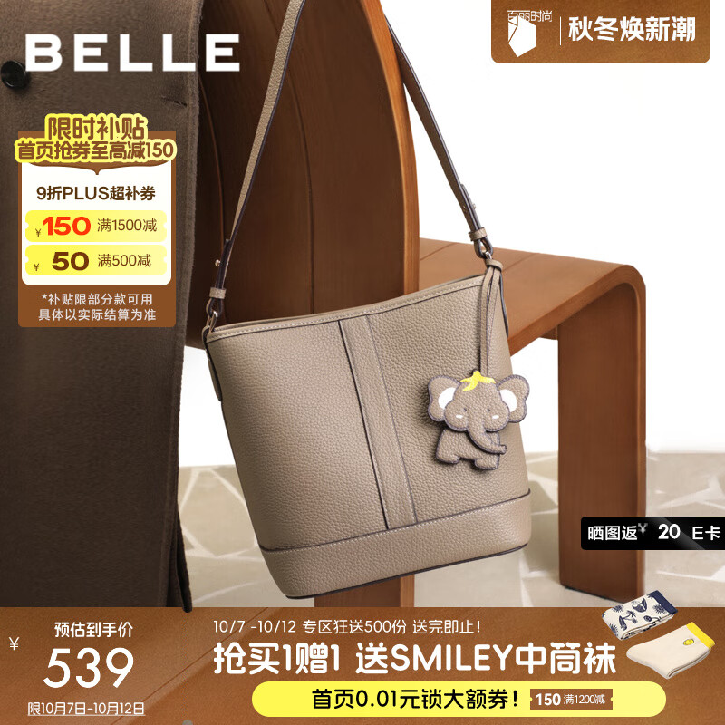 百丽包包女2025秋商场同款牛皮质感通勤单肩斜挎水桶包JY152DX5 灰色 F