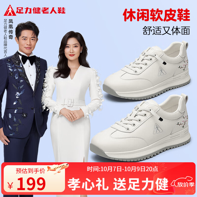 足力健中老年新品女鞋休闲皮鞋舒适软底妈妈奶奶鞋送礼长辈 白色-女款 36