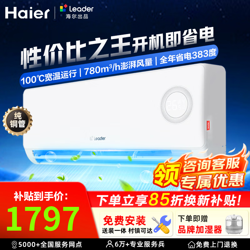 海尔空调净省电plus1.5匹/大1匹挂机双排铜管蒸发器新一级能效变频冷暖两用2匹挂机小红花套系含统帅 统帅 性价比之王 1.5匹 35LPA1