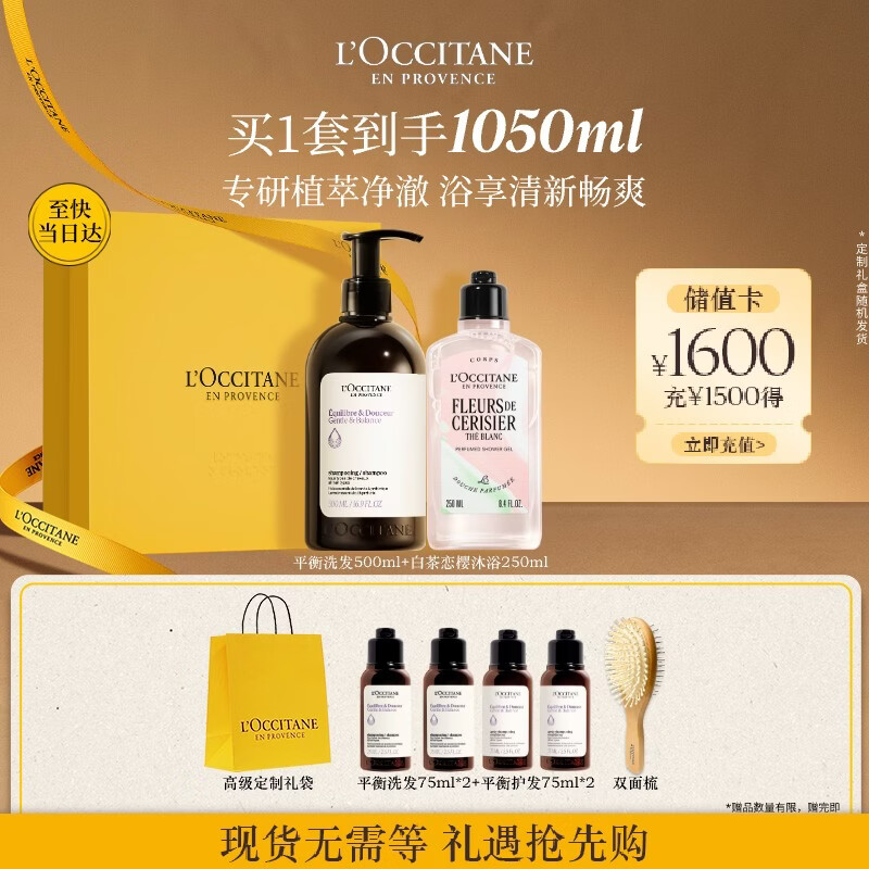 欧舒丹草本平衡洗发水白茶沐浴套装礼盒蓬松控油柔顺生日礼物男女士