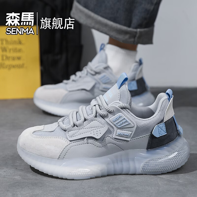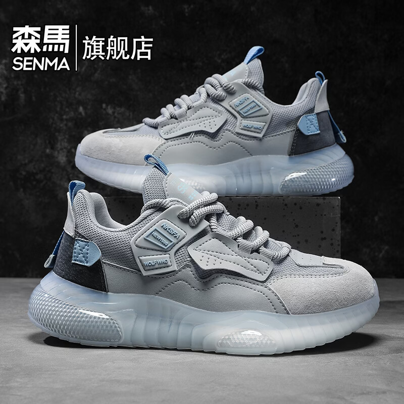 森馬夏季男鞋2026新款厚底减震跑步运动鞋男士户外透气防滑增高老爹鞋 灰兰【基础款】 39 标准码数/现货秒发