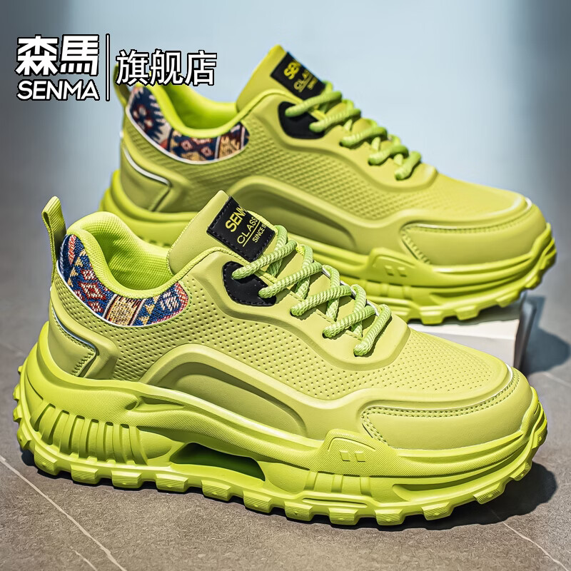 森馬男鞋2026新款夏季透气休闲时尚运动鞋青少年百搭港风厚底老爹潮鞋 绿色【基础款】 39 标准码数/现货秒发
