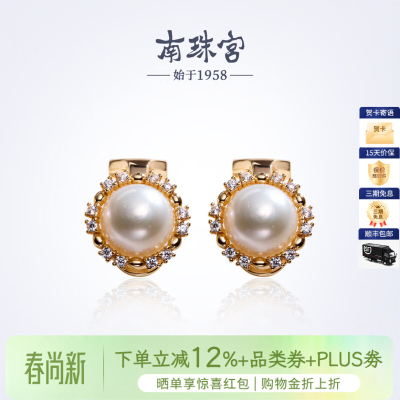 南珠宫圆福925银淡水珍珠耳环精致优雅高级感生日礼物送妈妈 金色款 9.0-10.0mm