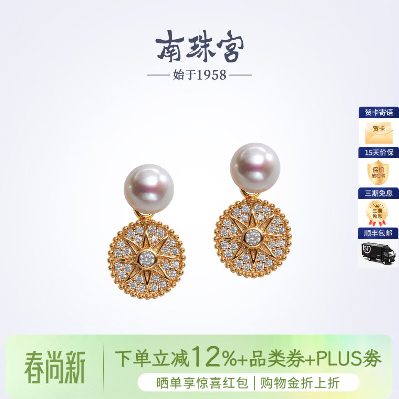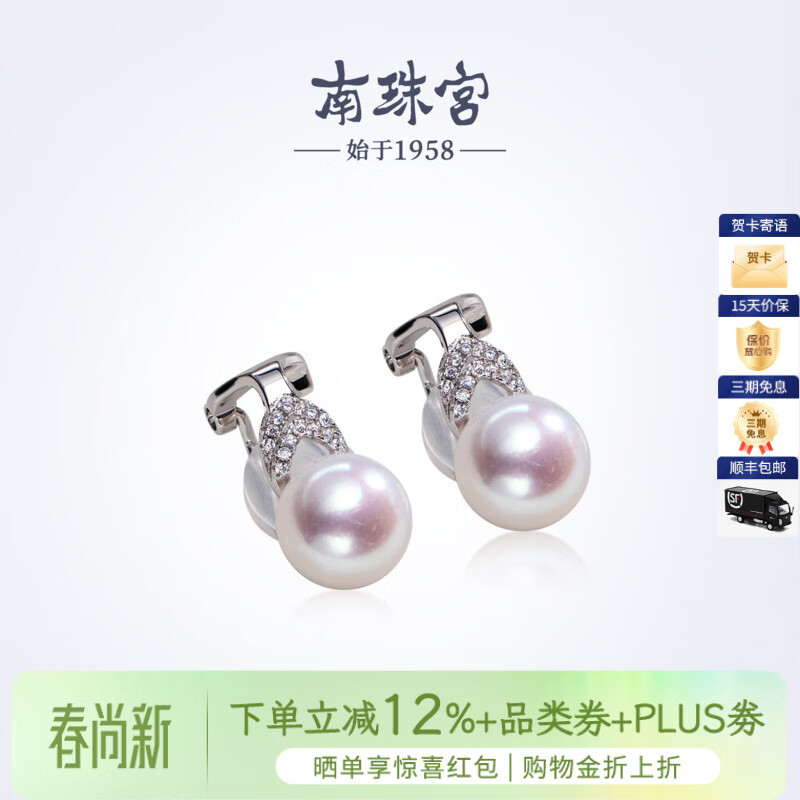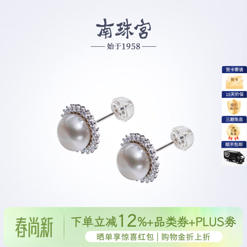 南珠宫圆福925银淡水珍珠耳环精致优雅高级感生日礼物送妈妈 银色款 9.0-10.0mm