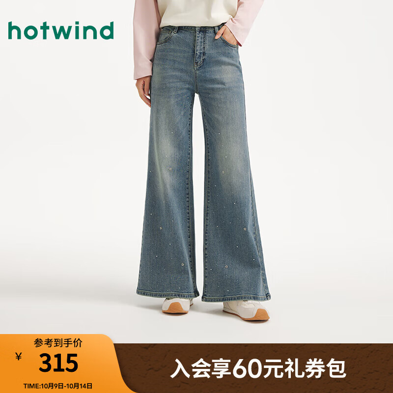 热风【商场同款】满天星牛仔裤宽松喇叭裤2025年秋新款亮钻潮流阔腿裤 27深兰 29