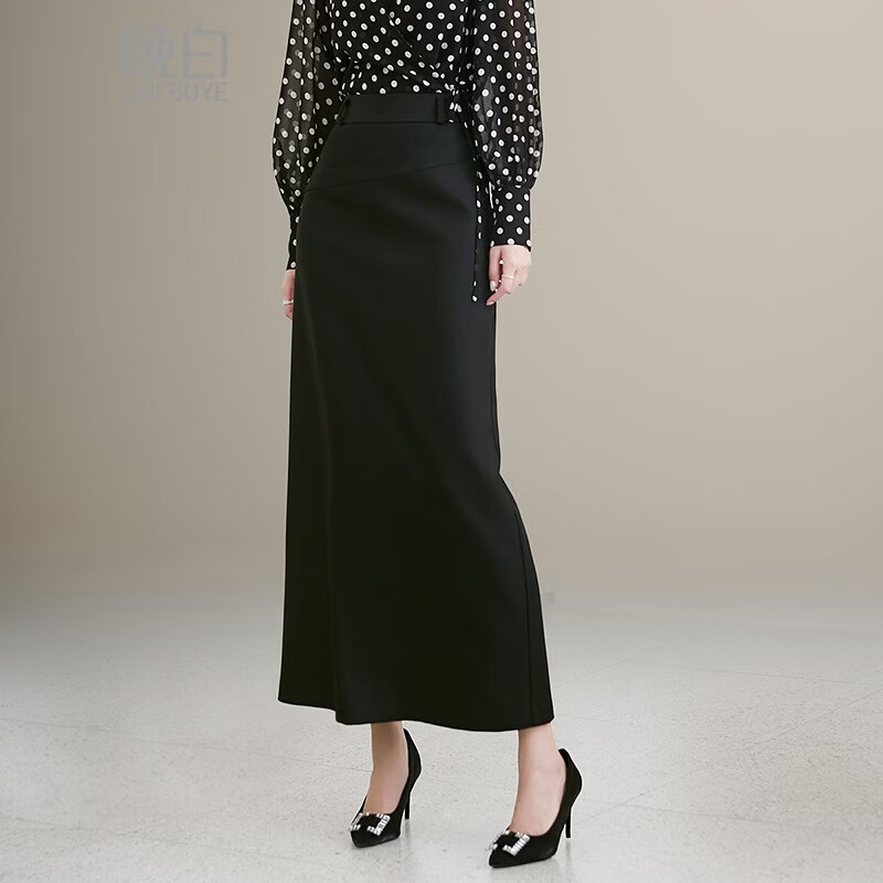 晚白【断码清仓】气质轻熟高腰半裙修身显瘦干练通勤直筒长裙 黑色 S