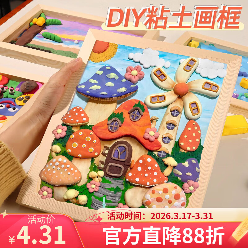 诗元幼儿园创意手工DIY木质立体专用画框架粘土超轻黏土相框彩泥作品 浅槽框木12*12-圆角款【粘土框】