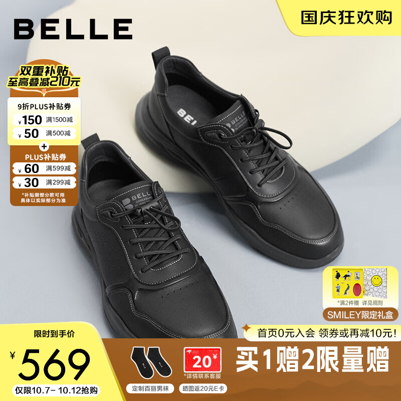 百丽户外休闲运动鞋男25秋新商场同款抽带厚底健步鞋加绒8VA01CM5 黑色-单里 42 (260mm)